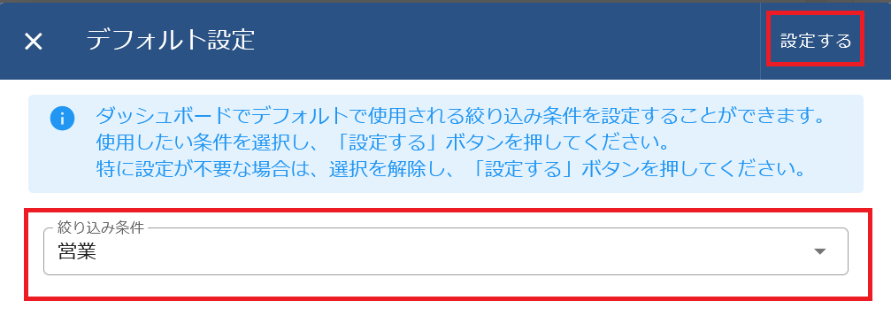 (4)「絞り込み条件」を選択し、[設定する]をクリックします。
