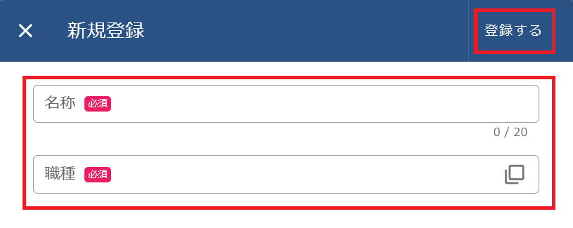 (2)「名称」と「職種」を選択し、[登録する]をクリックします。