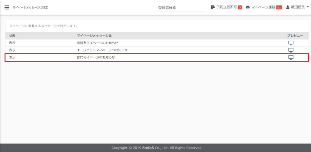 (2)『マイページ関連』の[マイページメッセージ]をクリックします。