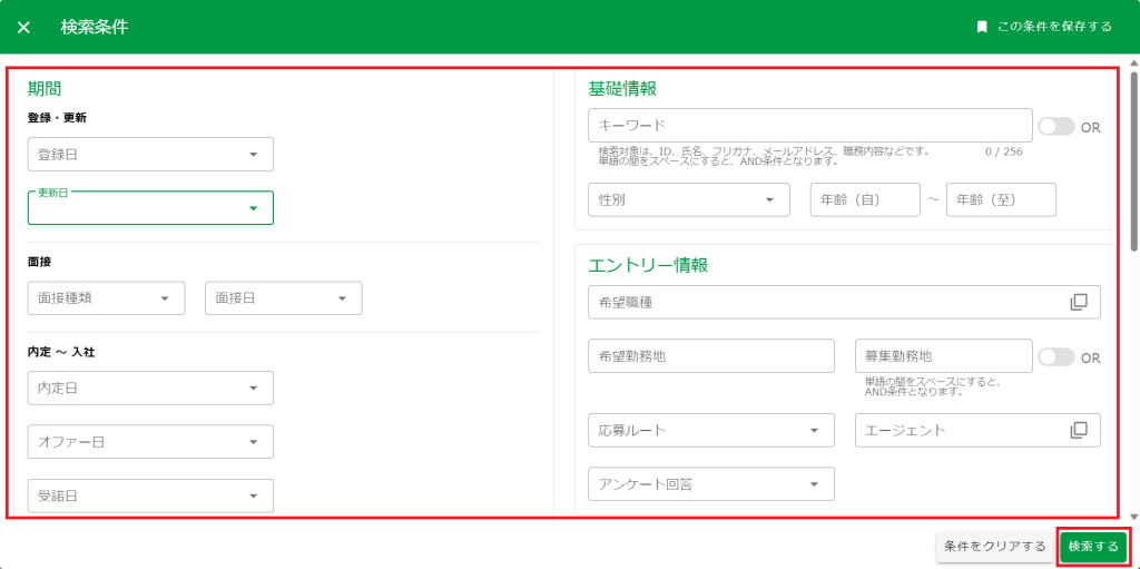 (2)[検索条件]でダウンロードしたい登録者を検索します。