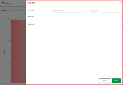 職種に設定した「職種オープン日」、「職種カテゴリ」、「担当リクルータ」で絞り込むことができます。