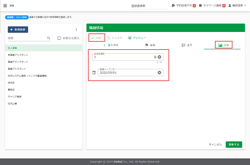 『職種別目標達成状況』画面で職種名をクリックすると、職種情報画面が編集状態で開きます。