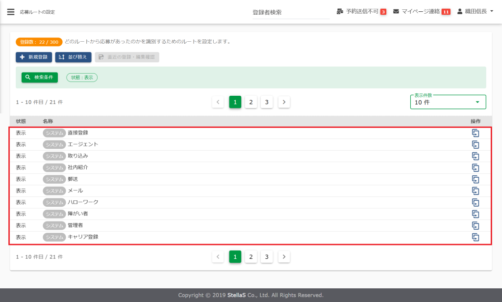 (3)あらかじめ登録してある応募ルートが表示されるので、編集したい応募ルート名をクリックし、変更してください。