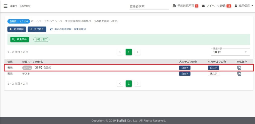 (3)あらかじめ登録してある募集ページの色が表示されるので、内容を確認し、必要に応じて変更してください。