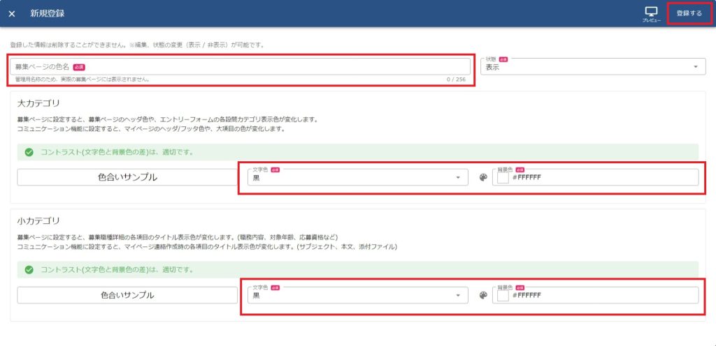 (5)募集ページ名・大カテゴリ色・小カテゴリ色を設定し、[登録]をクリックします。