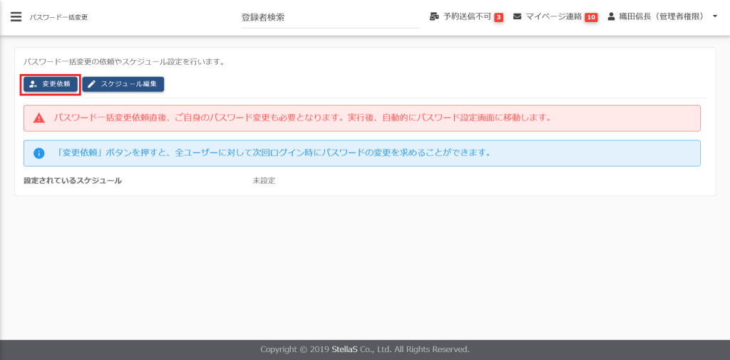 パスワード一括変更の依頼やスケジュール設定を行います。
