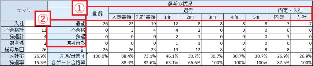 (2)『選考関連』の[ステータス]をクリックします。
