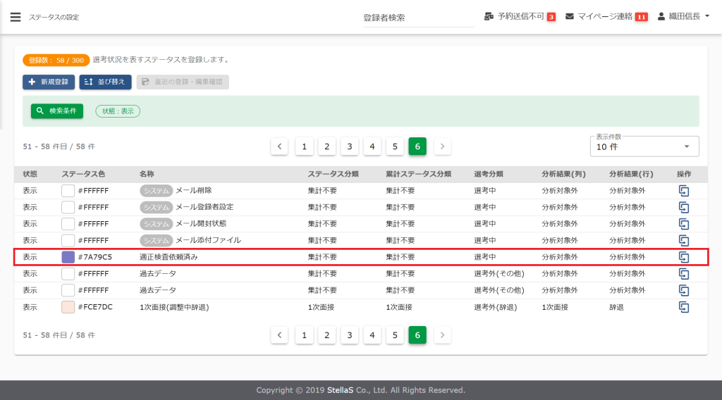 企業側で任意に作成したステータス(システム表記のないもの)を、分析レポートにカウントさせる場合は、ステータスの設定変更が必要となります。