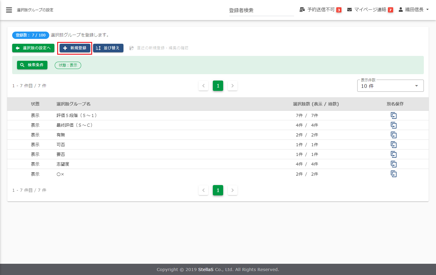 ※評価フォームに選択型の評価項目を作成する場合、選択肢をグルーピングした[選択肢グループ]を指定します。