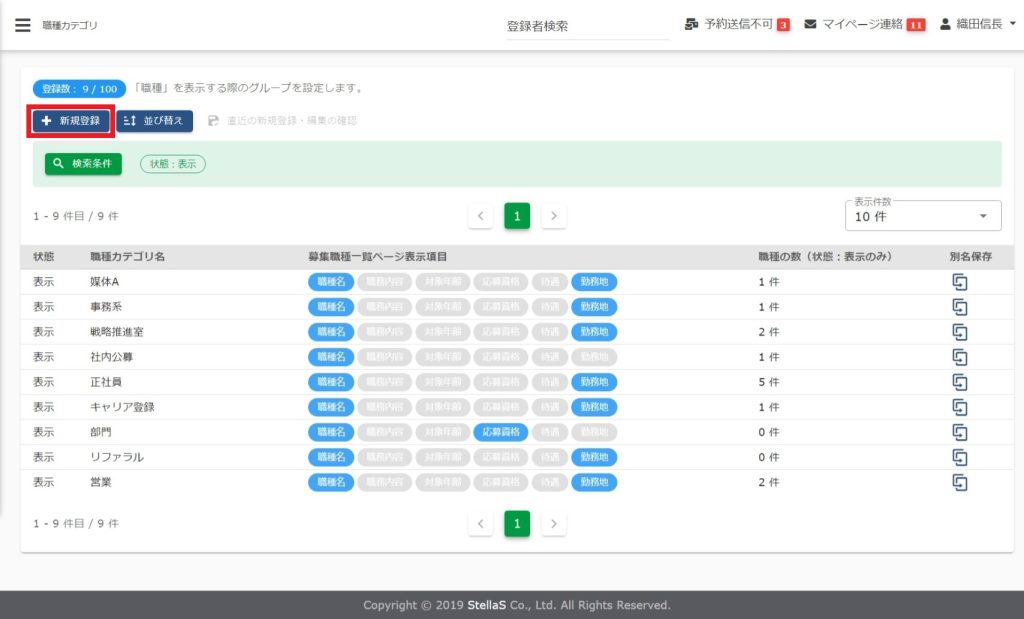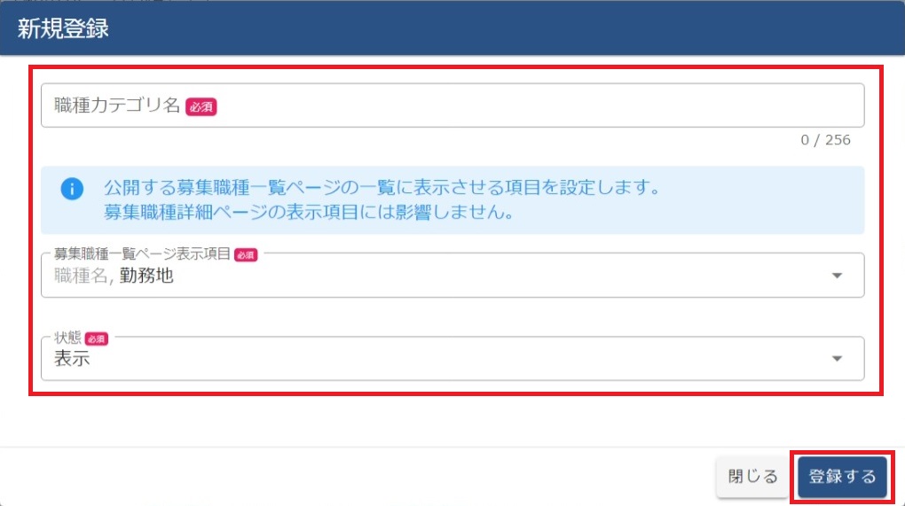 (3)[新規作成]画面で貴社の運用にあった職種のカテゴリ名を入力し、[登録する]をクリックします。