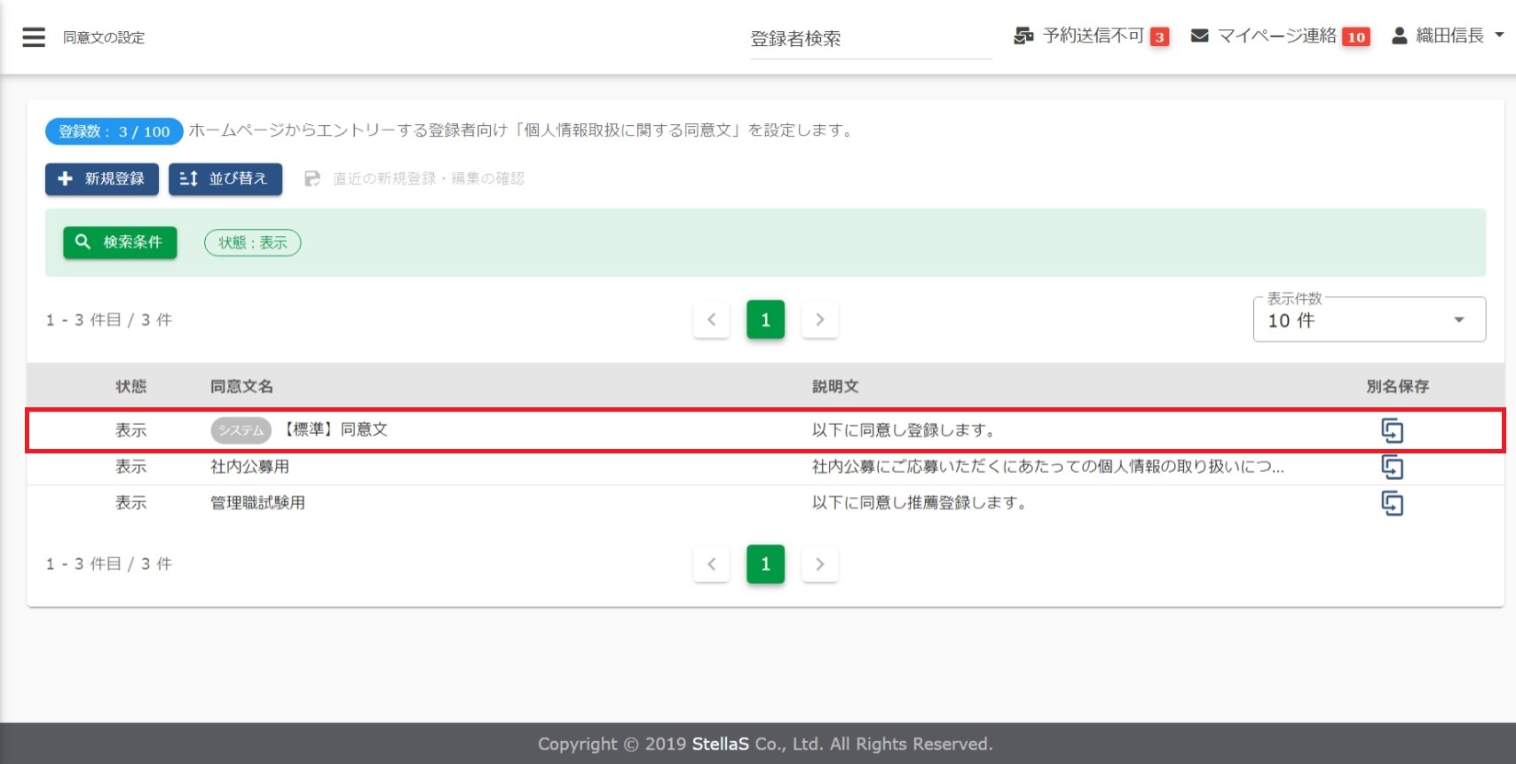 (3)一覧から「システム【標準】同意文」をクリックします。